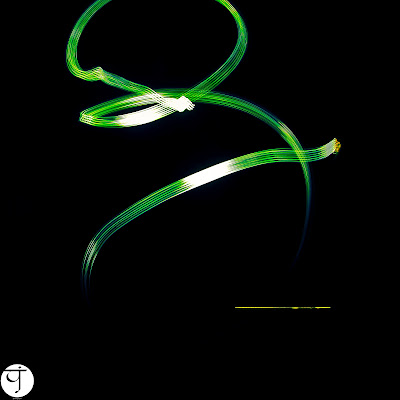 As expected, my first trials were troublesome, and this is normal as I don't know much about the technique itself and the place itself is not that adequate. At some test shots, some parts of the furniture were lit as I was moving the LED light in the air trying to write the Arabic letter "ع". Some of these test shots, though not perfect, but do have something about them, like Scrambled ع, where a tiny trace of my hand showed. It goes without saying that I had to wear a black outfit to avoid unwanted reflected light coming out in the image.